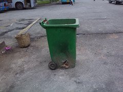 山東濰坊城區垃圾桶受損嚴重:桶身燒出大洞